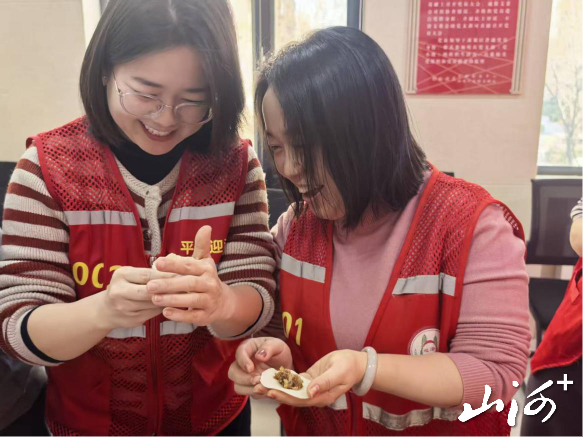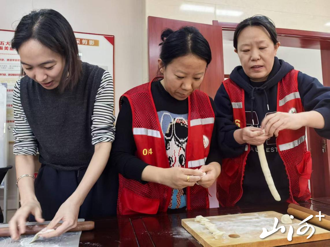 山西晚报·山河+讯 “这饺子馅儿调得闻见好香”“香得很!今天可得让户外劳动者们尝到咱的好手艺!”12月18日下午,太原市迎泽区劲松社区活动室里热闹非凡,社区人员与党建微帮站好兆头饭店志愿者们正热火朝天地准备冬至包饺子活动。