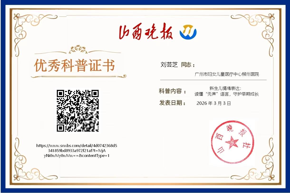 作者:广州市妇女儿童医疗中心柳州医院 刘芸芝