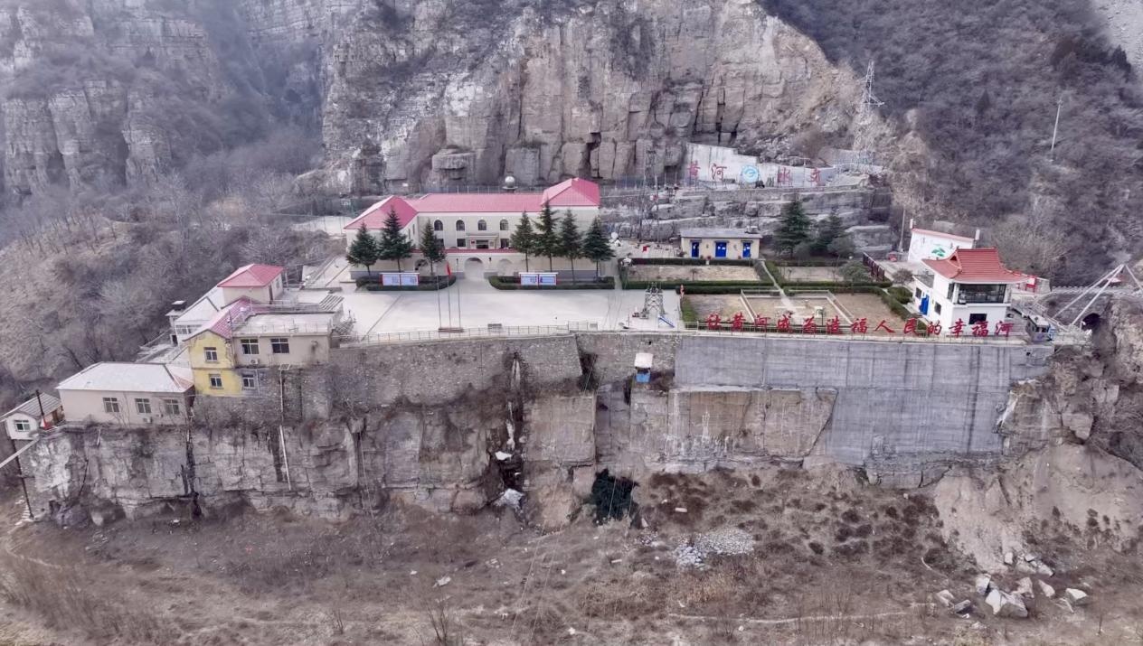 俯瞰龙门水文站嵌在悬崖一侧的全貌