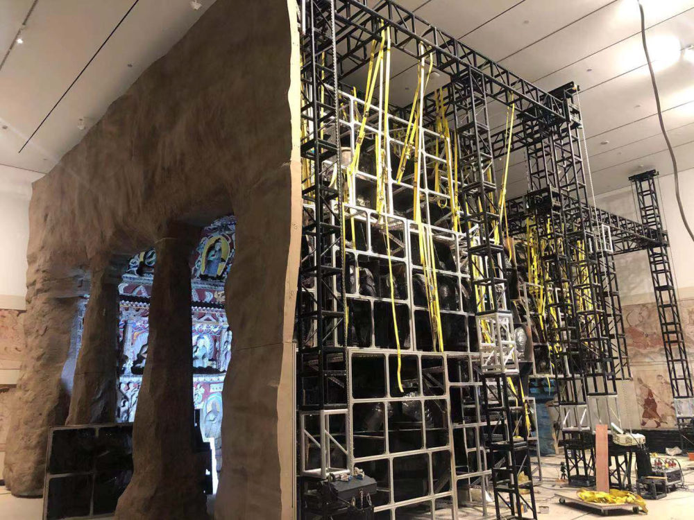 “要实现到各地展览,必须破解快速安装难题。”浙江大学文化遗产研究院副院长刁常宇指出,拼3D打印模块如同搭积木,每步都有误差,因此精准搭建模块非常耗时,第3窟复制窟仅安装就花了100天。