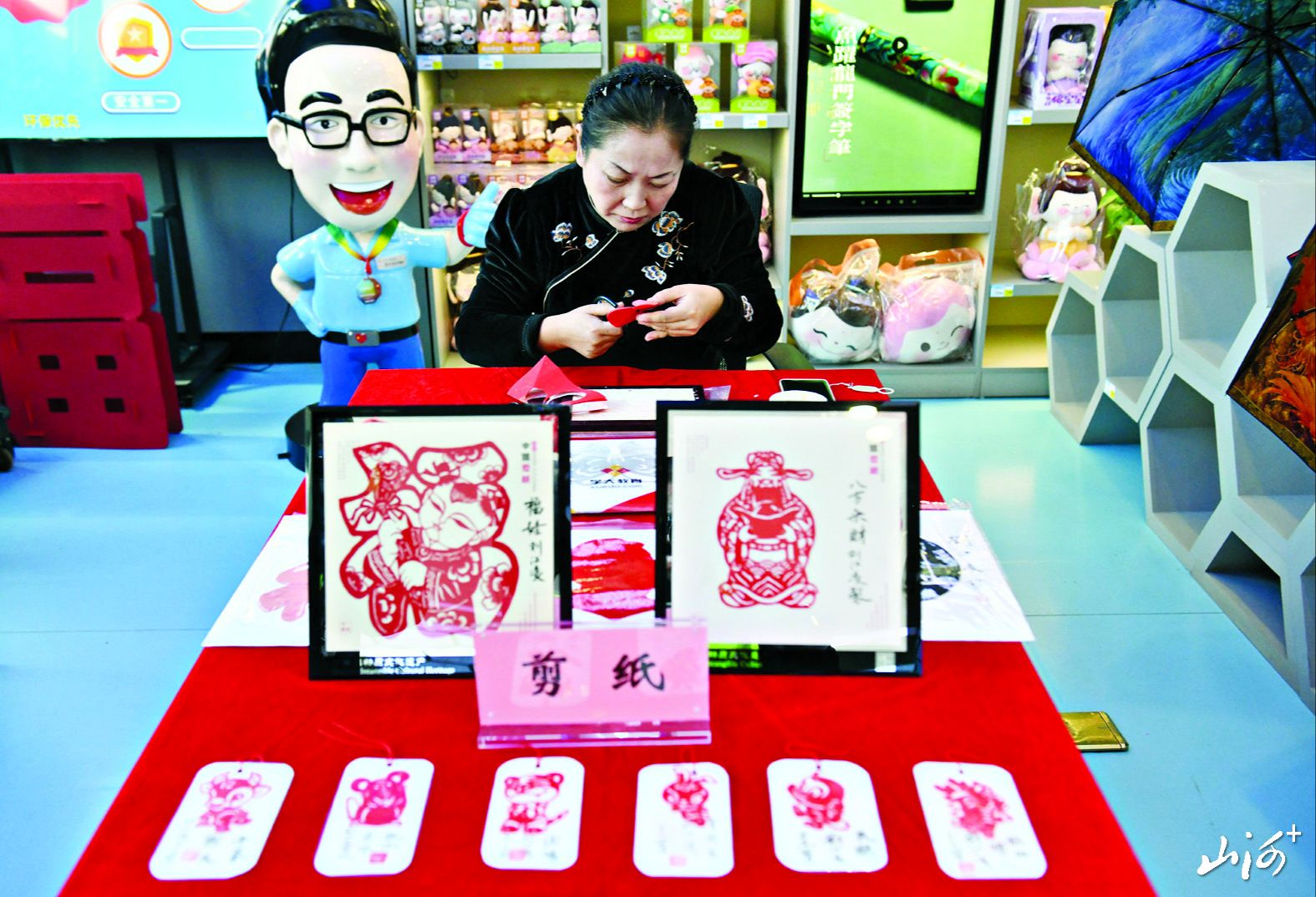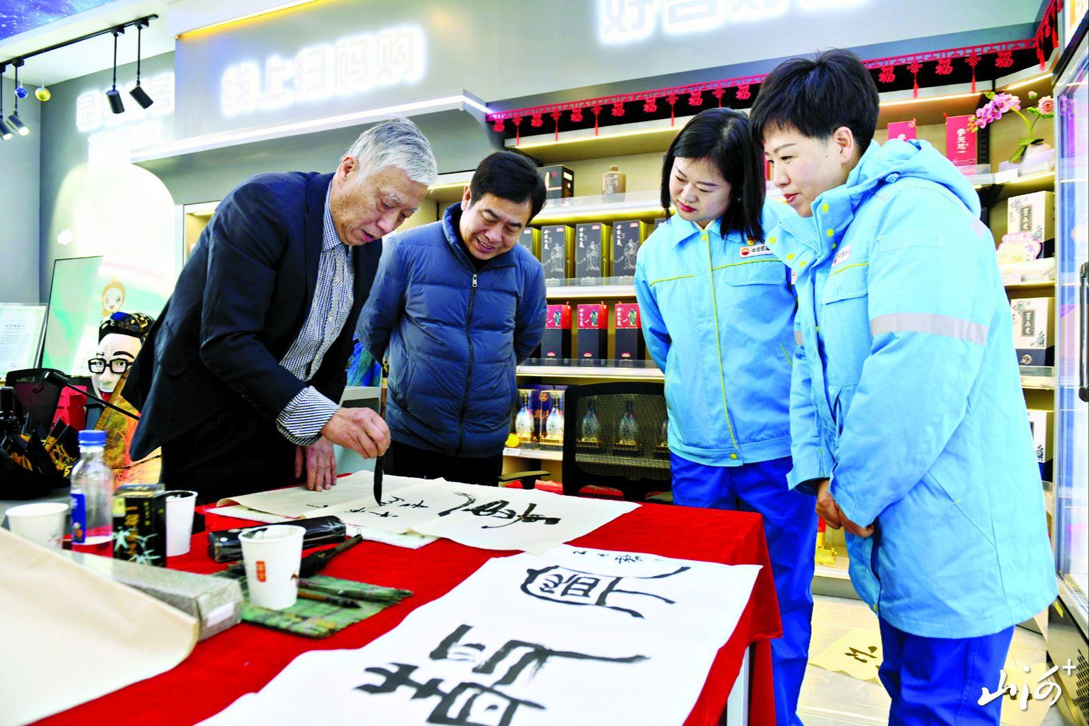 在非遗特色项目区,书法老师现场挥毫泼墨。山西晚报·山河+ 记者 武六红 钟清 摄