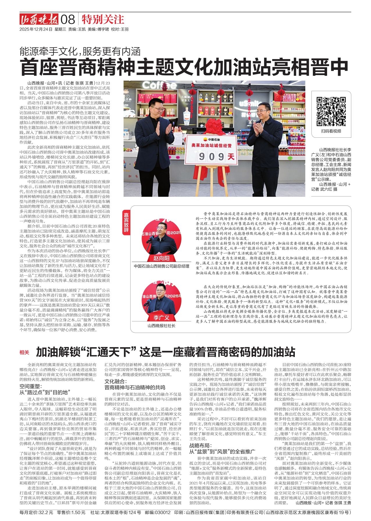山西晚报·山河+讯 12月23日,全省首座晋商精神主题文化加油站在晋中正式亮相。当天,中国石油山西销售公司第八季开放日活动同步举行,众多媒体与嘉宾见证了这一重要时刻。