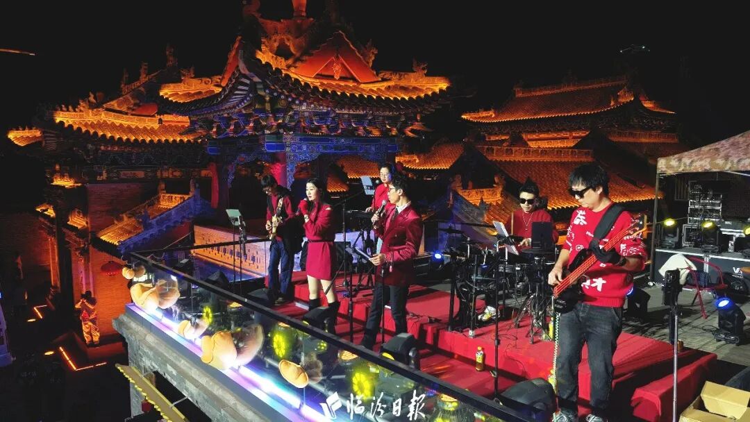 夜幕降临,华灯初上,古城墙区域音乐专场如期开演,《鼓楼》《蓝莲花》《小城故事》《我们的时光》等经典曲目轮番唱响,熟悉的旋律瞬间点燃全场热情,观众们不由自主地跟着节奏摇摆,仿佛整个世界都沉浸在这美妙的音乐之中。《夜的第七章》《花海》《月亮河》等乐器演奏接连登场,指尖流淌的音符与古城夜色完美交融,让现场观众沉浸在音乐与历史碰撞的奇妙氛围中。