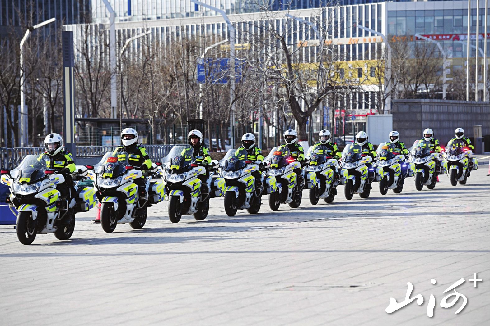 铁骑整齐列队,进行编队、转向等一系列高难度动作的展示。山西晚报·山河+记者 武六红摄