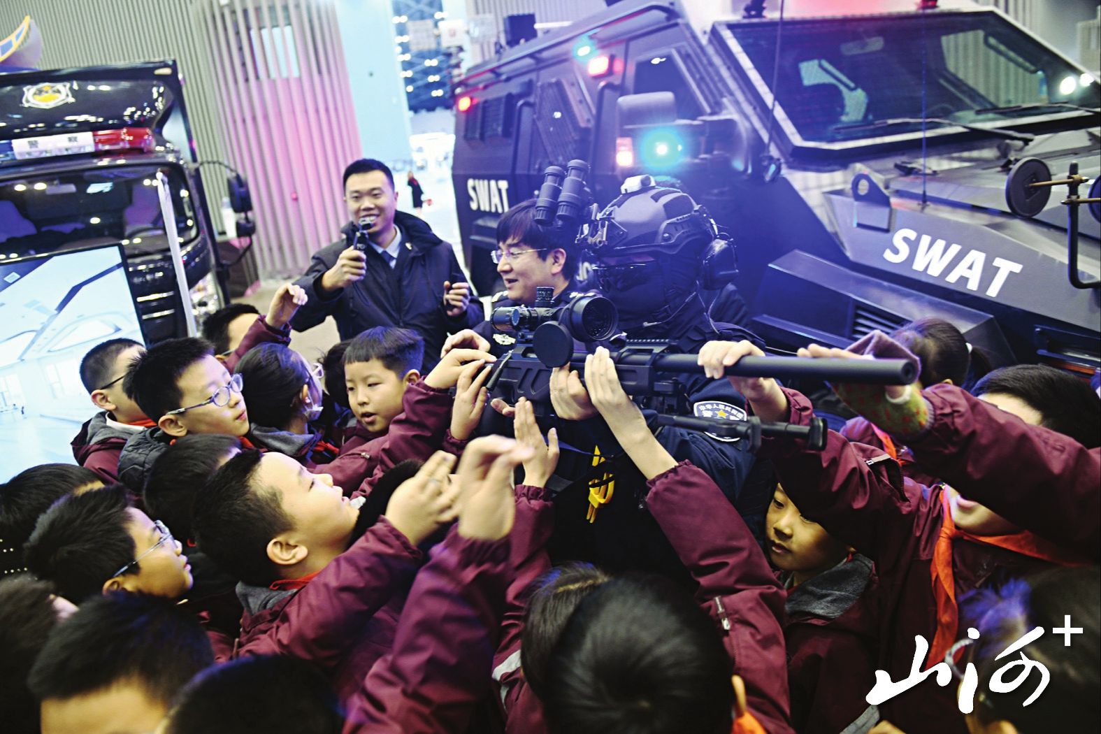 场外,铁骑轰鸣、警犬出击、无人机编队腾空,一系列紧贴实战的警务技能表演,引来观众阵阵惊叹与热烈掌声。场内,从大数据人工智能装备、警用航空无人机,到刑事技术、防护器械,琳琅满目的高精尖警用装备,尤其令青少年流连忘返。民众得以亲手触摸、近距离观察这些守护城市安全的“利器”,在震撼中切身感受到现代科技赋能下公安战斗力的飞跃。