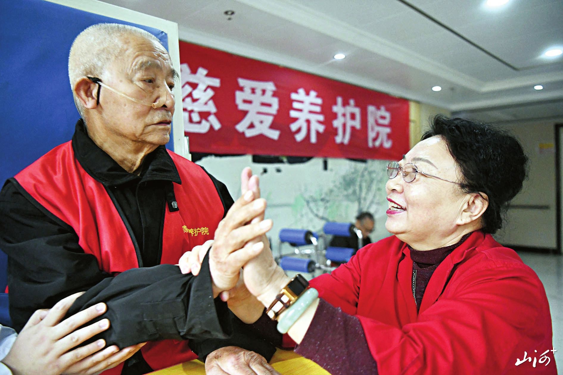 “简直是判若两人!”杨喜风说,潘果仙老人刚来的时候瘫痪不能自理,经过院里的康复训练和精心照料,慢慢地可以被两个人搀着溜达,现在自己就能走能跑,红光满面,性格开朗多了。