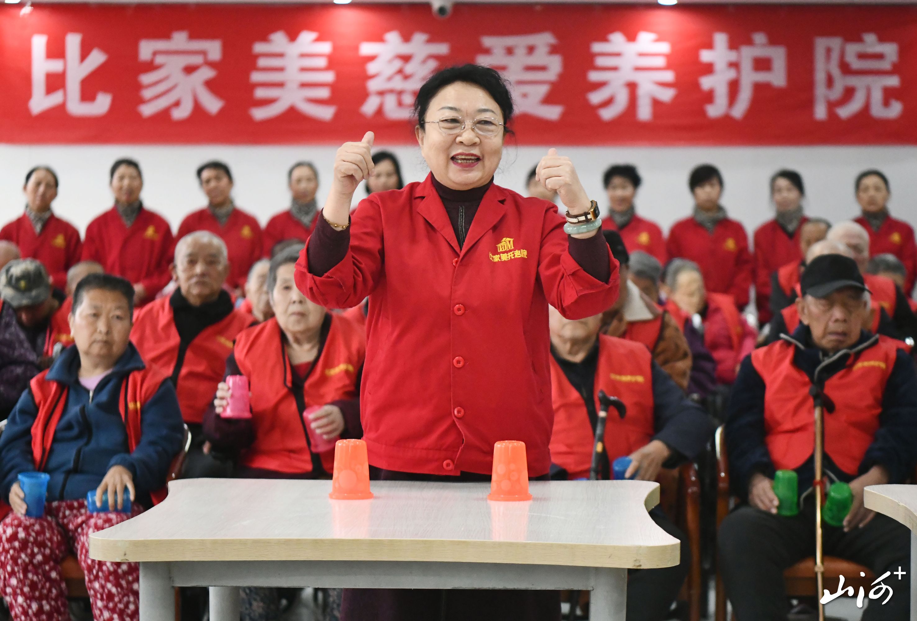 4月8日上午,在位于太原市杏花岭区的比家美养护院活动室内,50多位老人跟着比家美养护院党支部书记、院长杨喜风练习杯子舞。伴随着她的口令和示范,老人们跟着一起翻动杯子,双手拍打、交叉。“左拍3下,一二三;右拍3下,一二三,拿起来对拍4下。对啦,真棒!”得到夸奖的老人顿时喜笑颜开,有一些老人动作跟不上,杨喜风就走过去手把手教。