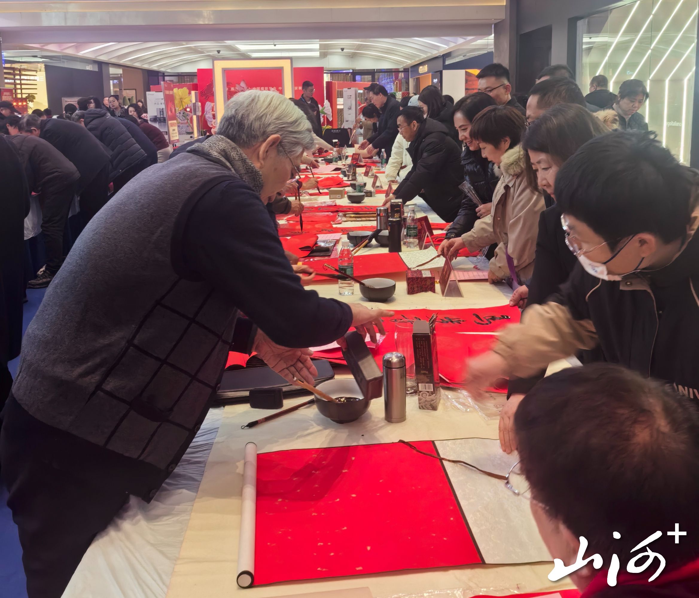 开幕式之后,书画笔会环节将现场气氛推向高潮。主会场内人头攒动,企业家、书画家、市民与艺术爱好者齐聚一堂,赏佳作、求福字,一派喜庆和谐的新年景象。20余位书画家现场挥毫泼墨,一幅幅笔力遒劲的春联、一个个寓意吉祥的福字跃然纸上,带着新春的美好祝愿送入千家万户。活动现场热闹非凡,墨香阵阵年味浓,吸引着大批群众驻足参与。