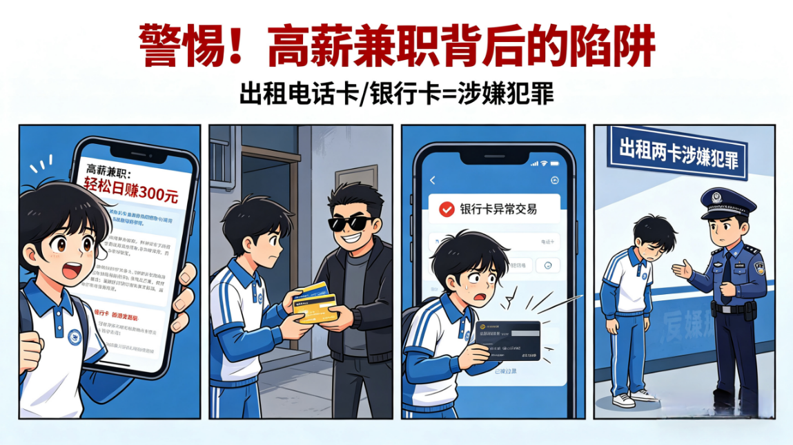 此次宣教活动深入剖析了两类典型“校园陷阱”:不法分子通过“低价皮肤、高价收号”等话术诱导青少年脱离正规平台交易,再以解冻金、保证金等名义实施的网络游戏虚假交易诈骗;利用学生社会经验不足的特点,以时薪过百为诱饵蛊惑其出租电话卡、银行卡的“高薪兼职”陷阱诈骗,导致学生面临法律风险。