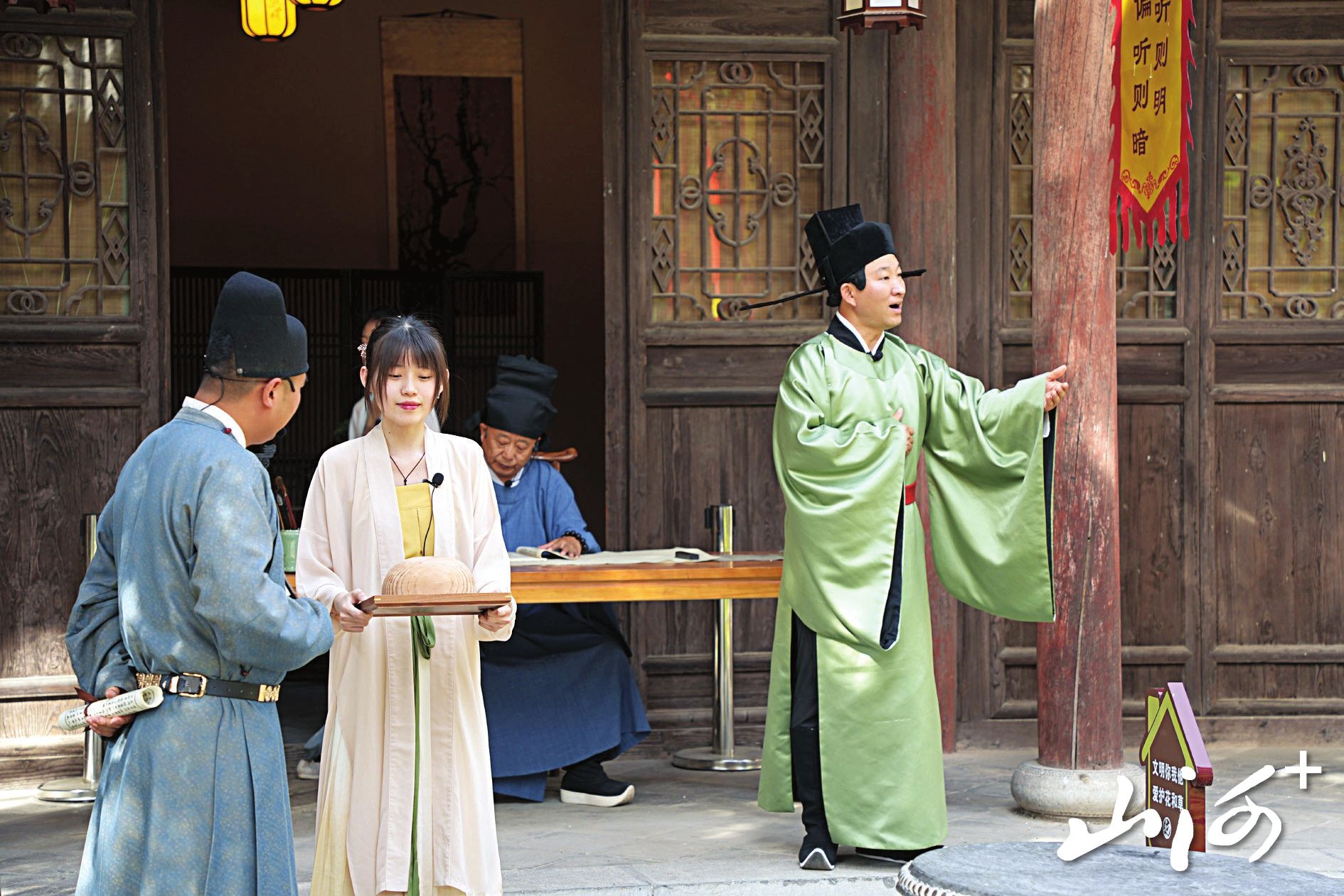 “请随我来。”身着宋制汉服的导游轻拂衣袖,身影隐入涑水书院的回廊深处。这不是寻常的参观,而是一场名为“镜之光莲之旅”的沉浸式演出。每一幕都如同一幅生动的历史画卷,游客穿梭其中,仿佛置身于历史的长河之中,跟随一部剧,穿越千年时光。