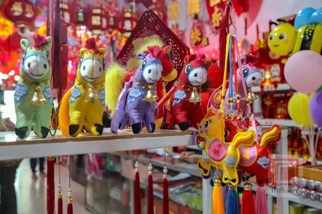 随着农历马年脚步的临近,大集上“马元素”成为了年货市场的主角,“马上来财”“马到成功”等带有美好寓意的马元素商品,吸引了不少顾客驻足挑选。