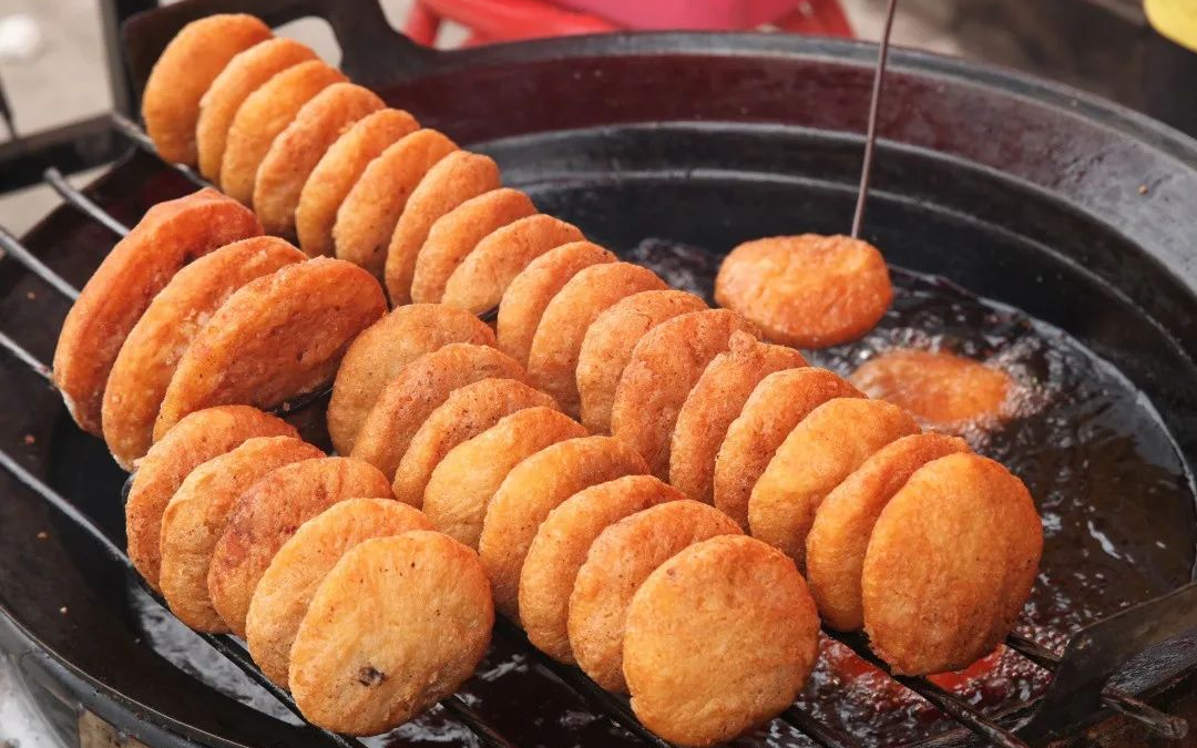 炸油糕绝对是山西大集美食的“顶流”,也是山西人春节必不可少的美味。夏县裴介镇墙下古会上,炸油糕的摊位前永远排着长队,摊主把揉好的黄米面团捏成小饼,包上枣泥、豆沙馅,放进滚烫的油锅里,随着“滋滋”的声响,油糕慢慢变得金黄酥脆,捞出来沥干油分,咬上一口,外皮酥脆,内里软糯香甜,馅料的甜香在口中散开,满口都是幸福的味道。