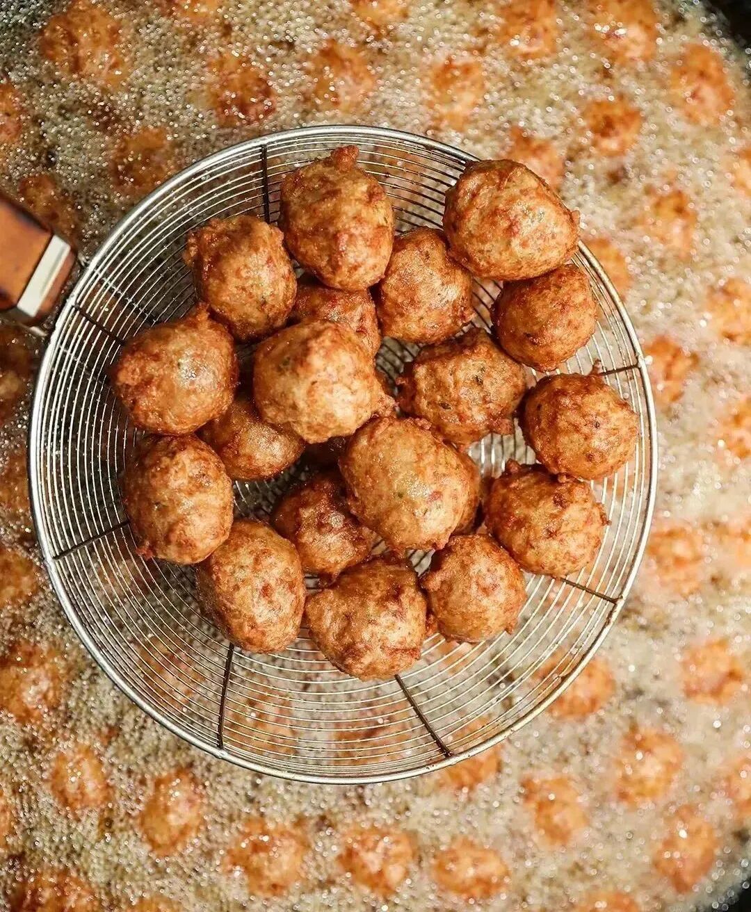 除了炸丸子,绝对是山西过年的“C位”选手,可荤可素,堪称“餐桌上的多面手”。荤类代表有猪肉丸,以肥三瘦七的后臀尖肉为原料,加入黄酱调味,经过两次精心炸制,成就干、酥、脆、嫩、香的口感;素的有如菜丸子,更是另一番风味,用胡萝卜擦丝,拌上面粉和鸡蛋,炸得小巧玲珑,外酥里嫩,咬一口全是蔬菜的清甜。