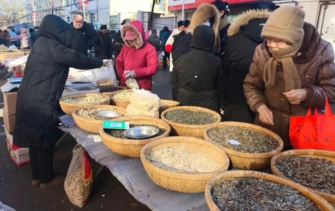 集市的热闹不仅在于物资采购,还有二人转、锣鼓表演,浓浓的年味扑面而来。