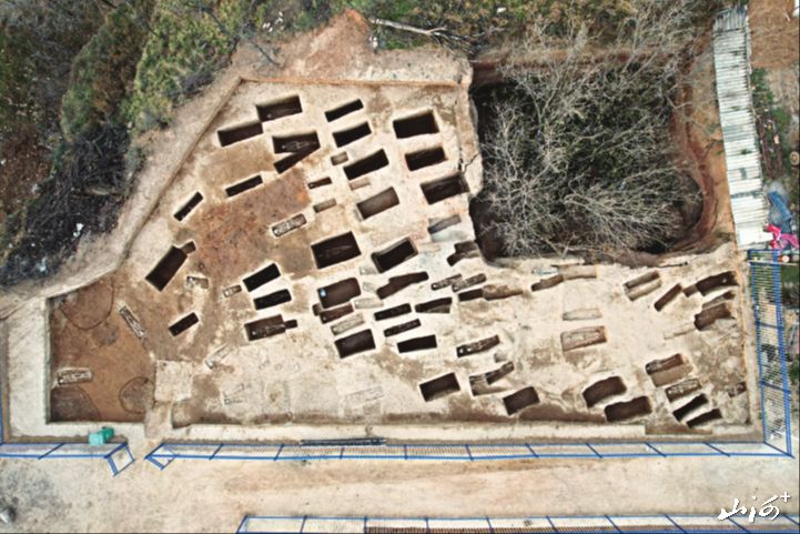 第一个10米×10米探方挖下去,密密麻麻的二三十座墓葬显露出来,最终清理出约40座墓葬,且排列有序,层层叠压,可见当时是按一定顺序、一定群体规划下葬的,“对我们研究当时的社会组织、亲属关系、葬俗制度意义重大。”张光辉说。