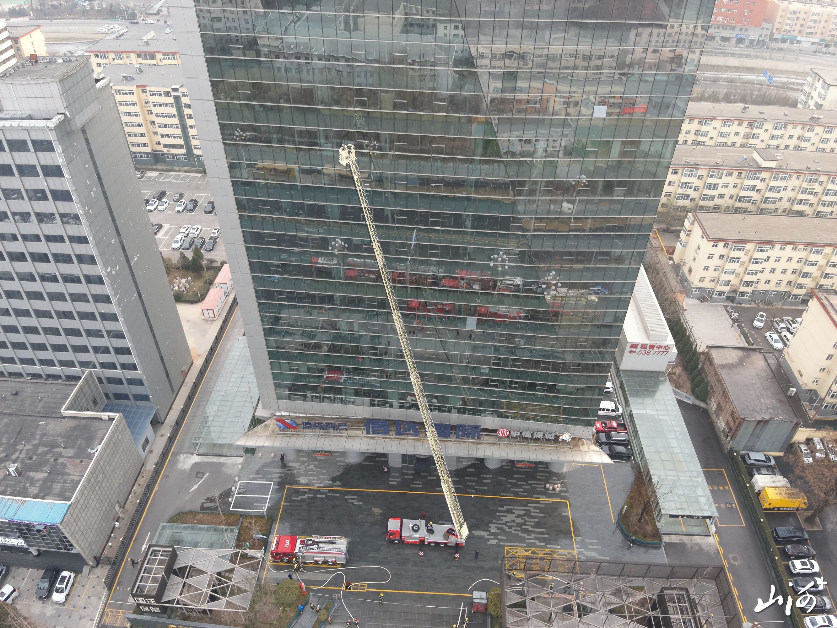 12月11日,一场超高层建筑测试性实战演练在太原市万柏林区信达国际金融中心展开。