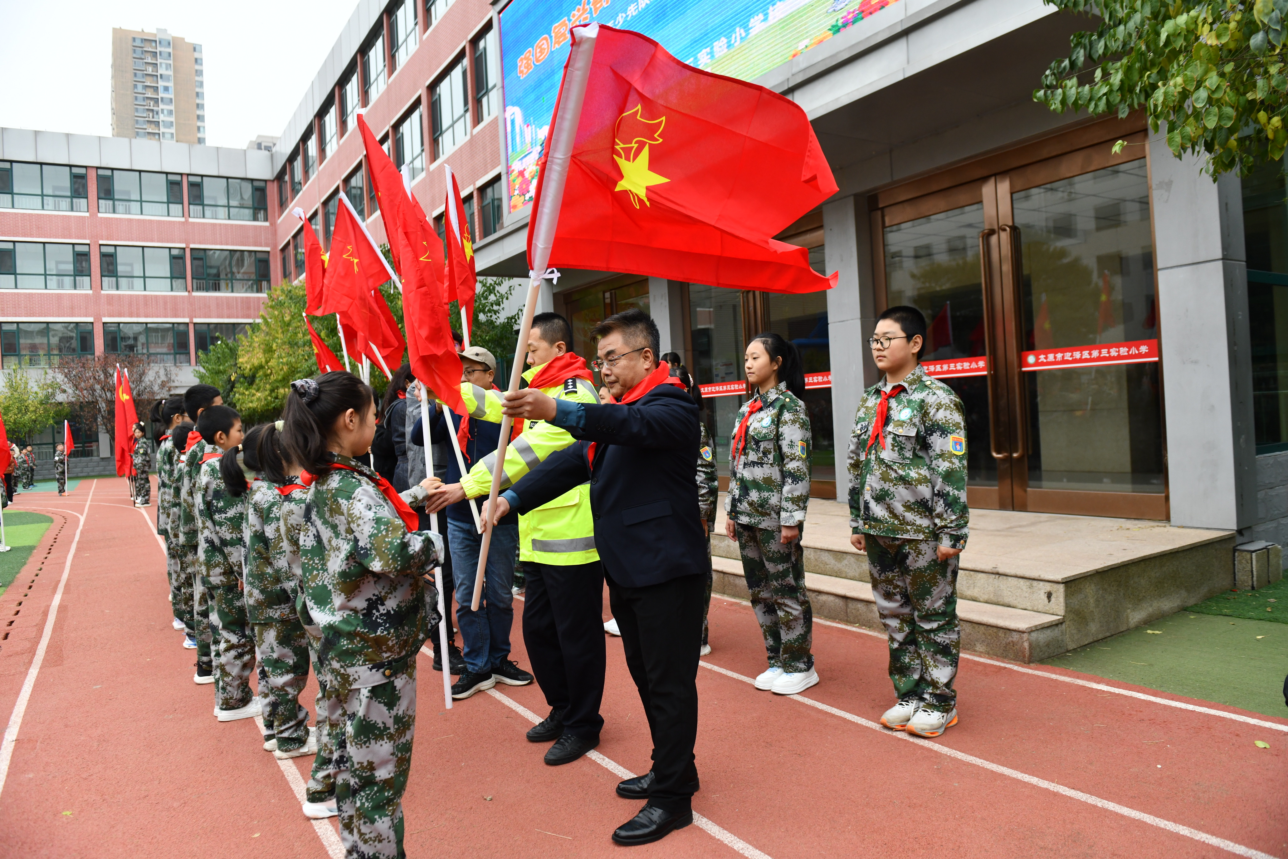队委就职环节,少先队大队委张丰林带领全体少先队员宣誓,“为共产主义事业而奋斗”的誓言铿锵有力;大队长亓灵犀代表大队委员会命名各中队并授中队旗,标志着新一届大队委正式接过“引领责任”。