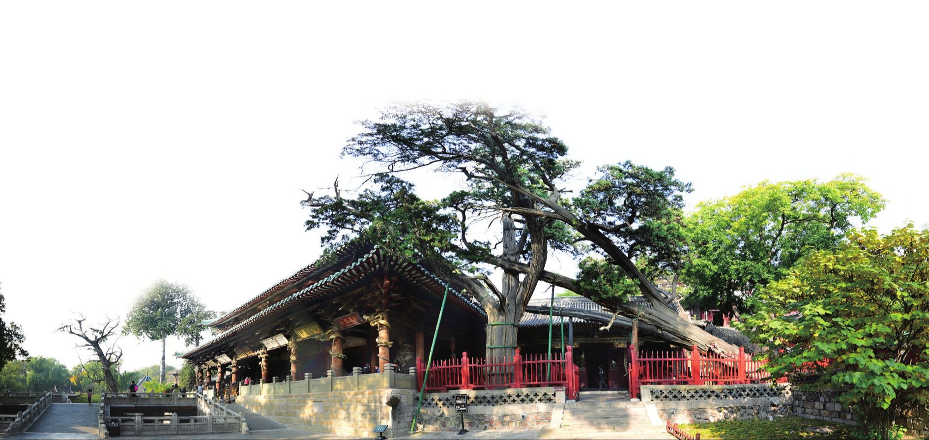 圣母殿与旁边的周柏 山西晚报·山河+记者马立明摄