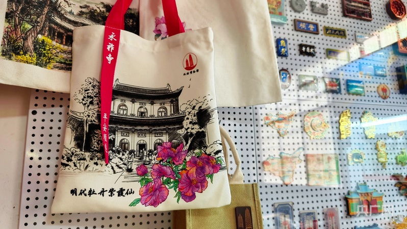 在双塔博物馆里,记者看到牡丹主题的文创产品颇受游客的喜爱,将“紫霞仙”的雅韵融入帆布包、冰箱贴等日常好物中,很多游客都在观赏牡丹后,在文创店里挑选心仪的产品,把这份四百年的“国色天香”带回家。