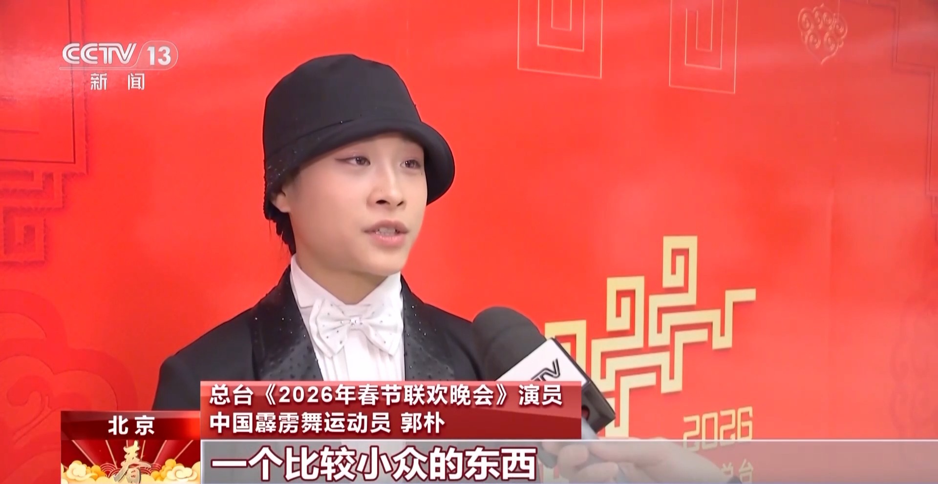 总台《2026年春节联欢晚会》演员 中国霹雳舞运动员 郭朴:这次在节目当中做得最多的就是霹雳舞里面的一些技巧难度动作,这是我第一次参加央视春晚,在春晚当天让大家看到霹雳舞,很开心,因为霹雳舞算是一个比较小众的东西,它可以带到全国人民的眼前,这个机会很难得。