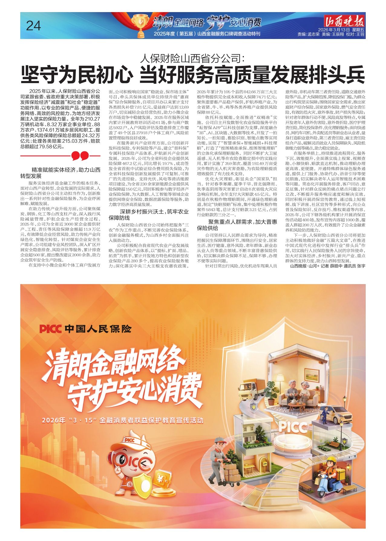 人保财险山西省分公司始终把服务“三农”作为工作重点,不断完善农业保险体系,创新金融服务模式,为山西乡村全面振兴注入强劲动力。