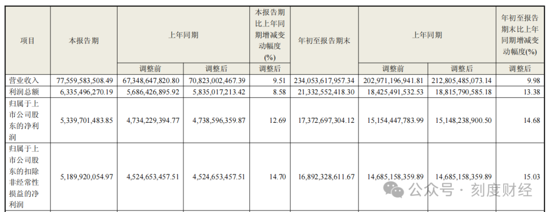 《刻度财经》研究财报发现,2025年前三季度营收2340.54亿元,同比增长9.98%,归母净利润173.73亿元,同比增长14.68%,盈利增速连续五年前三季度保持双位数且跑赢营收。