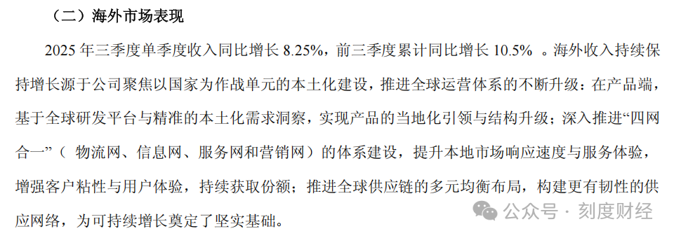 此外,海外市场虽实现双位数增长,但区域分化明显,成熟市场增长放缓,新兴市场依赖度提升,而中东非、南亚等市场的高增速能否持续,仍受全球经济波动、汇率变化等外部因素影响。