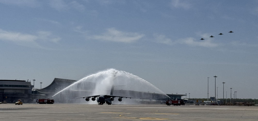 22日上午,中韩双方在韩国仁川国际机场举行志愿军烈士遗骸交接仪式。9时50分许,呼号为“荣归50”的运-20B起飞。进入中国领空后,呼号为“红鹰”的4架歼-20迎接护航,“双20”列阵长空致以崇高敬意。11时25分,运-20B平稳降落在辽宁沈阳桃仙国际机场,机场以“过水门”最高礼遇为英灵洗尘。