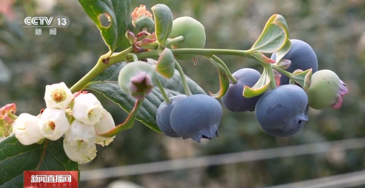 与传统地栽不同,这里的蓝莓生长在特制的无土基质中,全程实现精准管控。科技种植不仅有效提升了蓝莓品质,还大幅提前了上市时间,通过大棚温控技术,比当地露天种植的蓝莓上市时间提前了2个月以上。