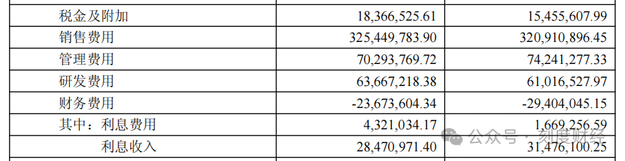 虽然管理费用同比下降5.33%至0.70亿元,财务费用同比减少0.57亿元至-0.24亿元,但被销售费用和研发费用的增长对冲。