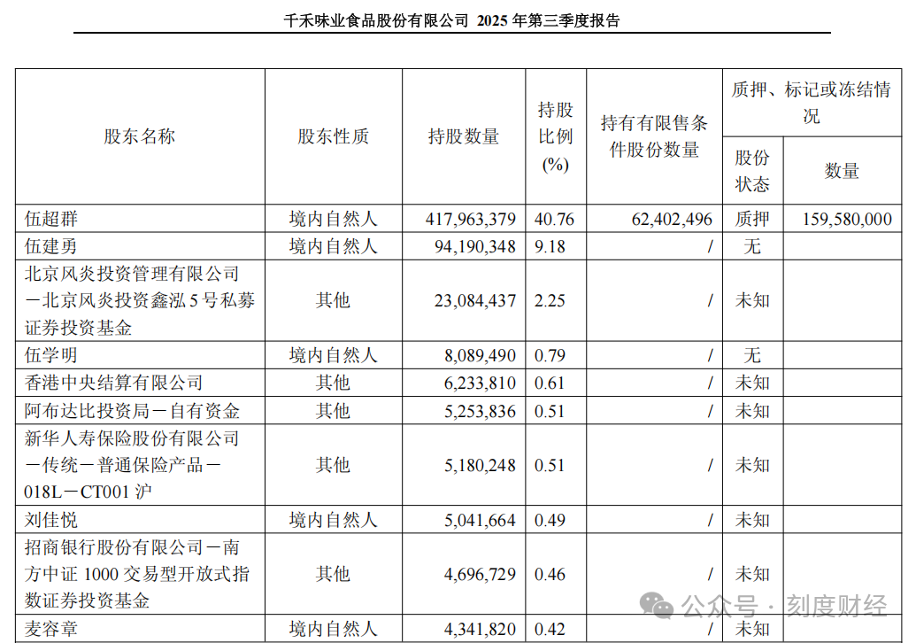 作为家族企业,伍超群、伍建勇、伍学明长期位列千禾味业前十大股东,包揽TOP3,其中,伍超群与伍学明为兄弟关系,伍建勇则是伍学明之子,三人通过紧密的家族纽带深度绑定,合计持股比例超50%。