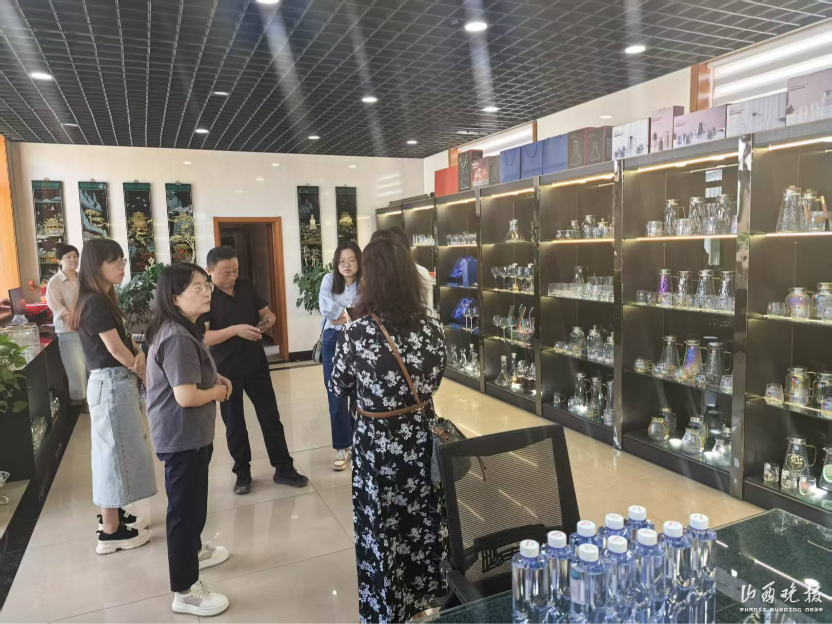 采购团一行深入祁县玻璃产业一线,实地走访了喜福来玻璃器皿有限公司、山西大华玻璃实业有限公司、山西宏艺玻璃器皿有限责任公司、山西东玉玻璃有限公司等外贸企业,详细了解企业外贸产品出口情况及内外贸一体化发展情况,并听取企业关于外贸产品拓内销的意见建议。