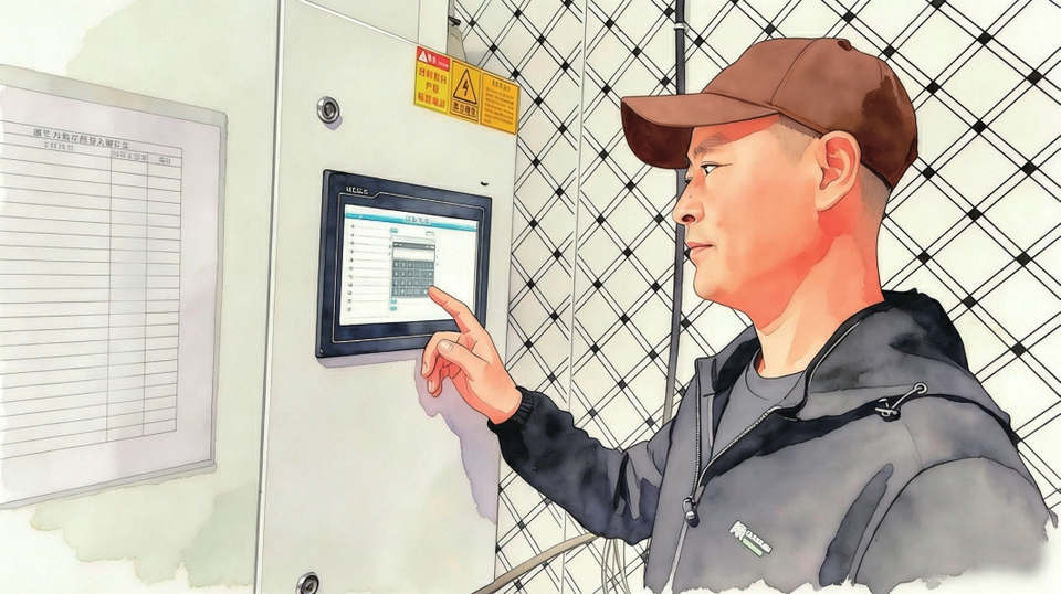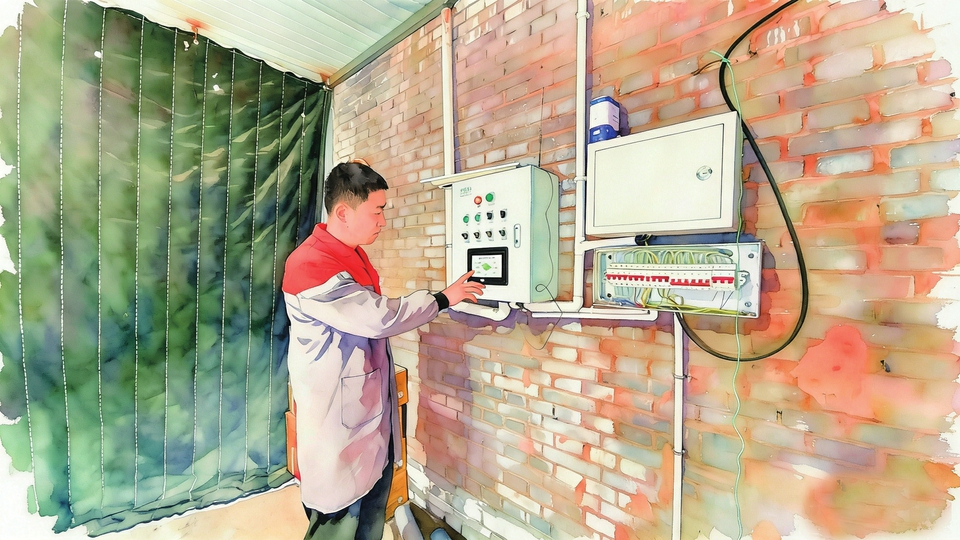 菌生万物生物科技有限公司工作人员正在设置温湿气光一体化智能监控系统参数。
