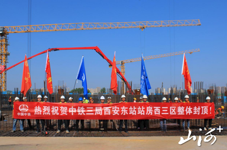 山西晚报·山河+讯 在西十高铁西安东站的建设热土上,中铁三局西安东站“工匠”青年突击队以青春为甲、以奋斗为刃,用一面鲜红的“青年突击队”旗帜,凝聚起无坚不摧的青春合力。