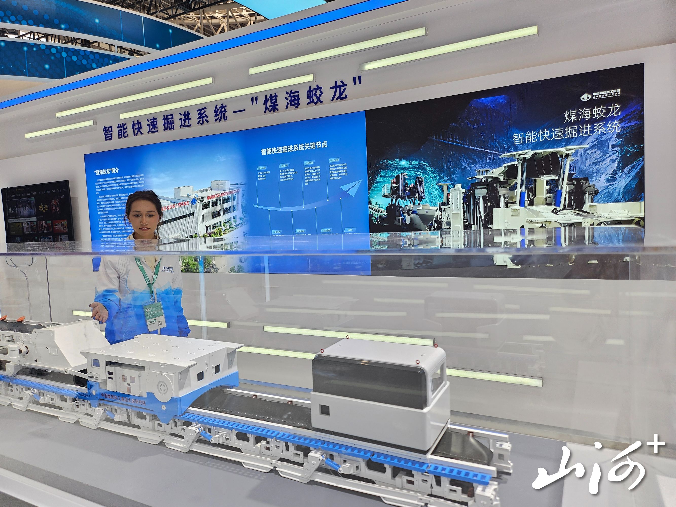 山西晚报·山河+讯 “现在我们看到的这个装置就是全球首套煤矿井下智能快速掘进系统——“煤海蛟龙”,被誉为煤炭工业的重大技术革命。”9月27日,2025年山西(太原)能源产业博览会中一个“大家伙”吸引不少参观者驻足停留。“原来这个就是‘煤海蛟龙’,太霸气了。”一位中学生兴奋地弯腰看着。“煤海蛟龙”是由中国煤炭科工集团太原研究院有限公司研制的新一代煤矿快速掘进高端装备,该系统彻底解决了长久以来煤巷掘进、支护、运输不能平行作业的世界级难题。