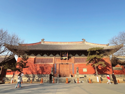 拾级而上,大雄宝殿赫然在目。“大雄宝殿最独特的一点便是‘四朝合一’——集辽地基、金大殿、明塑像、清壁画于一体,展现了契丹、女真、汉与满的多民族文化交融这一独特历史层积性。”讲解员常家琪告诉记者。1933年,建筑学家梁思成考察时,曾言“殿面阔九间,巍然压台上,余辈遽窥全豹,不期同声惊讶,叹为巨构。”当年,梁思成、林徽因一行开启古建考察之旅,首站即来到大同,先后走访了云冈石窟、华严寺、善化寺等,为这座千年古都诸多古建筑留下珍贵的测绘图稿和文字资料。如今,在大同古城东城墙脚下,建有专门纪念梁思成的展馆。