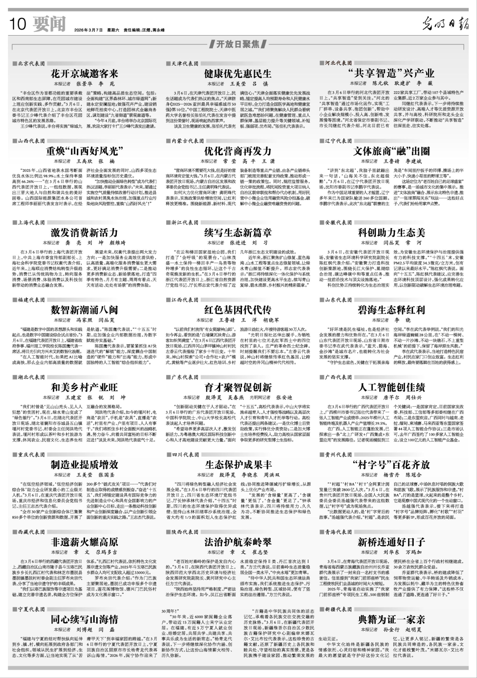 “2025年,山西省地表水国考断面优良水体比例达98.9%;水土保持率提高到66.26%……”在3月6日举行的山西代表团开放日上,一组组数据,展现出三晋大地人与自然和谐共生的美好画卷。山西国际能源集团水务公司首席工程师李丽丽代表发言时表示,在经济社会全面发展的同时,山西多项生态环境质量指标创历史最优。