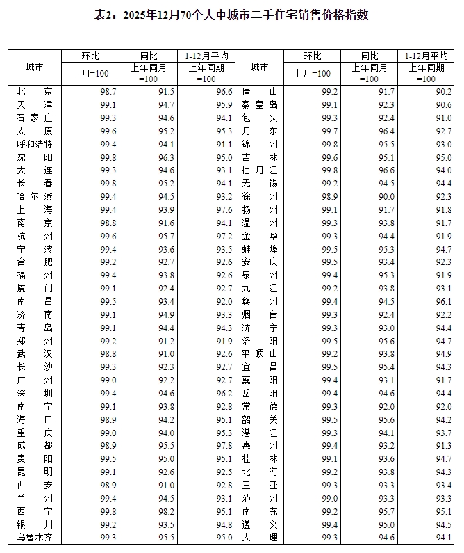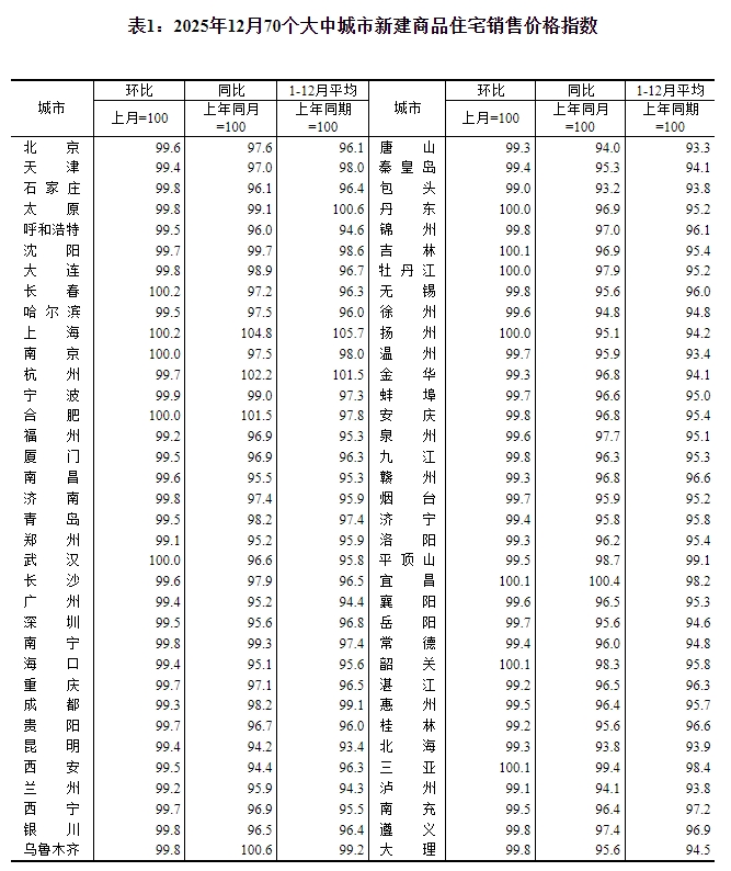 ——国家统计局城市司首席统计师王中华解读2025年12月份商品住宅销售价格变动情况统计数据