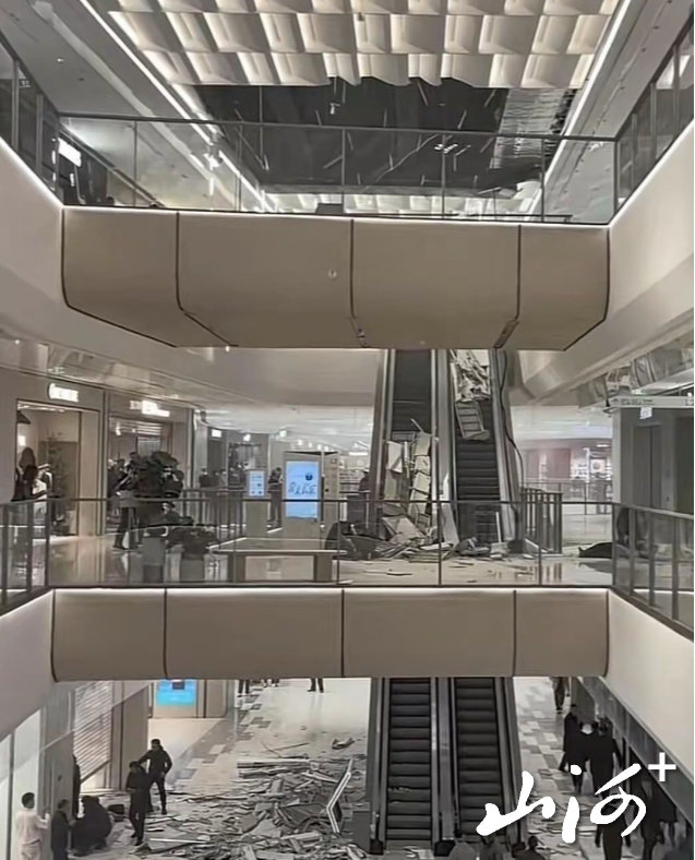现场视频显示,脱落位置位于商场一处扶梯上方的三楼顶棚,脱落面积达几十平方米。吊顶材料散落在从三楼通往二楼的扶梯及各层地面,现场扬起大量灰尘。另一画面中,地面可见血迹、带血纸巾及吊顶碎片,疑似有人员受伤。有目击者表示,是三楼的吊顶发生脱落,造成多人受伤。事故发生后,商场已进行清场。多家商户证实,商场目前已暂停营业,具体恢复时间待通知。
