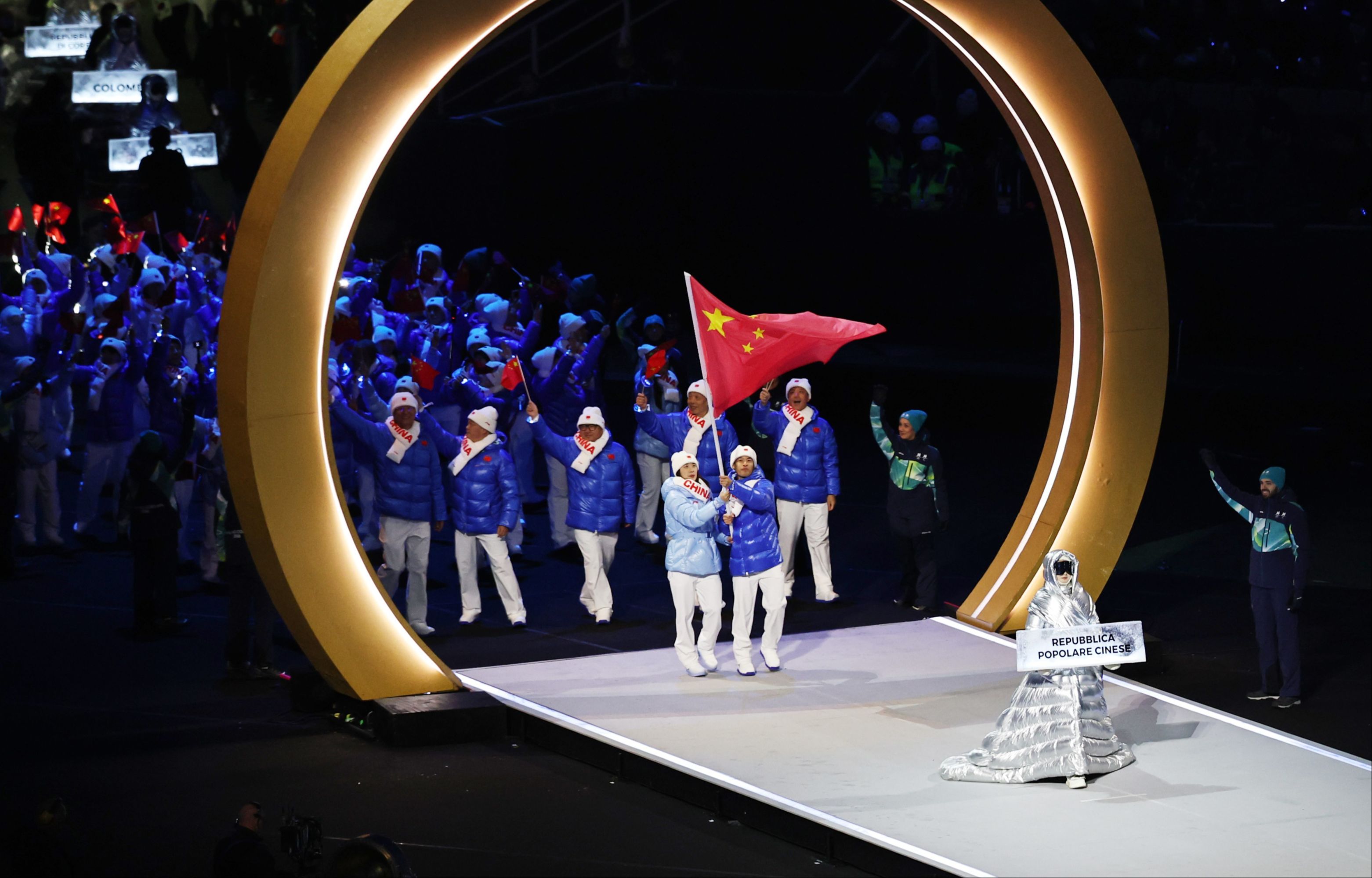 运动员入场打破了传统。代表团不再只走进一座场馆,而是分散在利维尼奥、普雷达佐、科尔蒂纳,走进离他们赛场最近的地方。这是一次“去中心化”的温暖尝试,让奥运不再只是“被观看的盛典”,而是“可参与的节日”。