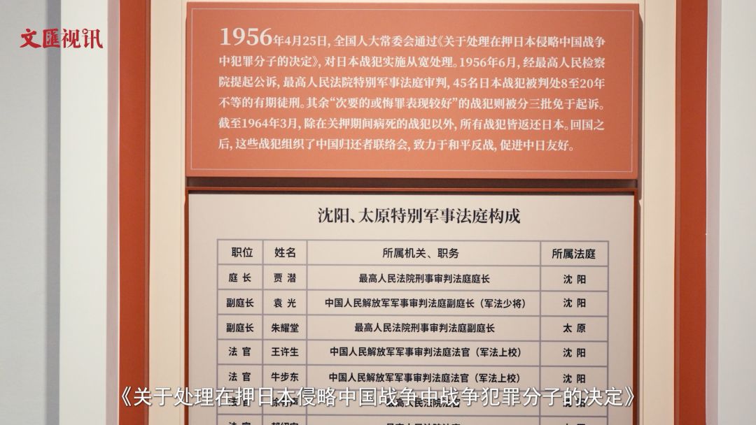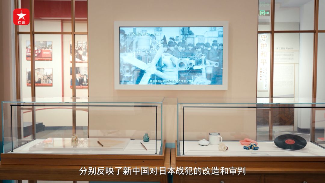 在上海淞沪抗战纪念馆《正义昭昭 大道同行——战后审判与世界和平主题展览》中,展示了两段珍贵的历史影像,分别反映了新中国对日本战犯的改造和审判。