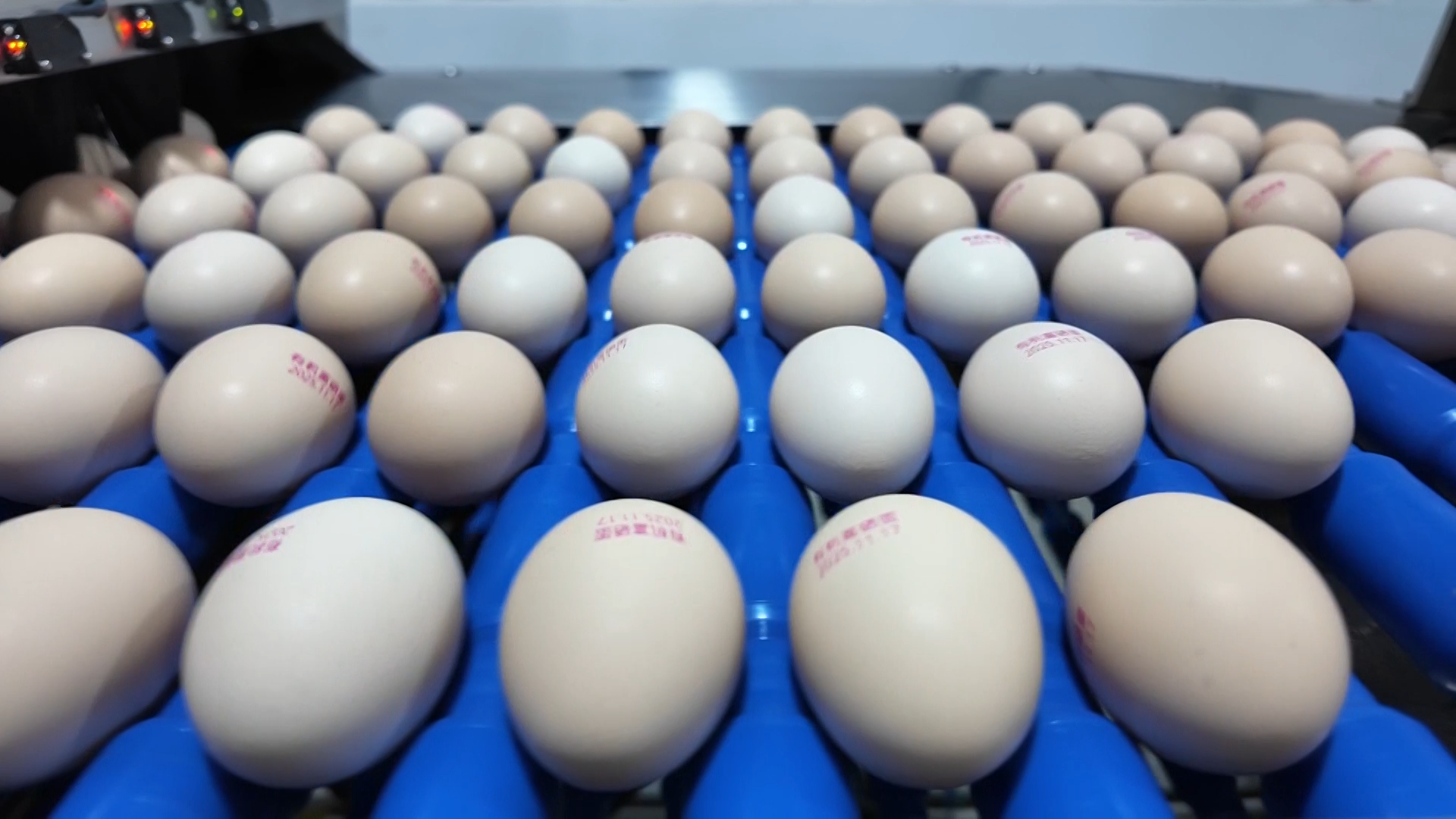 长山生态农业车间里,AI充当起了“鸡蛋质检员”,从清洗、杀菌,到瑕疵检测、称重分级,每一枚鸡蛋都经过严格筛选,42克、46克的等级划分得清清楚楚。