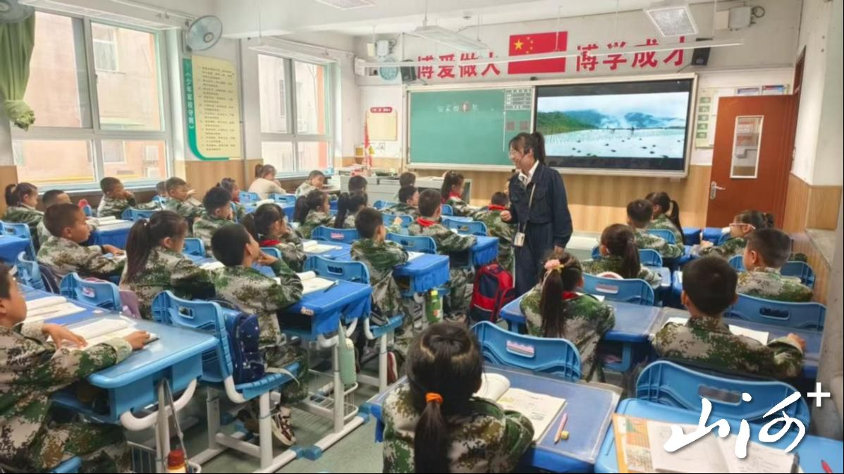 语文教学实现全方位融合。何静儿老师执教一年级《田家四季歌》,以AI技术呈现“稻田”场景,通过插秧动作体验、农事视频观看,将劳动教育融入识字教学。薛钱宇老师讲授四年级《暮江吟》,依托“智慧中小学”平台优质资源,设计多样观察活动。郝俊蓉老师讲授五年级《少年中国说》,借历史视频创设情境,实现思政教育与语文课堂的深度融合。