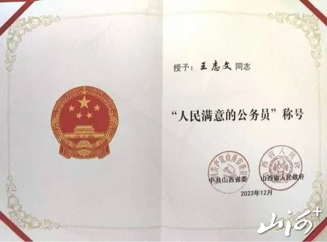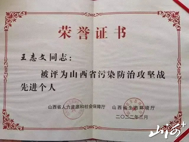 二十余载扎根基层、深耕环保,王志文的付出收获累累硕果:2022年获评山西省污染防治攻坚先进个人、山西省五一劳动奖章;2023年荣获全省“人民满意的公务员”称号。
