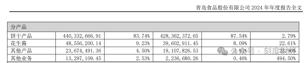 业务结构高度依赖传统爆款,2024年年报显示,饼干产品贡献营收4.40亿元,占比高达83.74%,其中钙奶饼干从上世纪60年代诞生至今,仍是无可替代的“压舱石”。