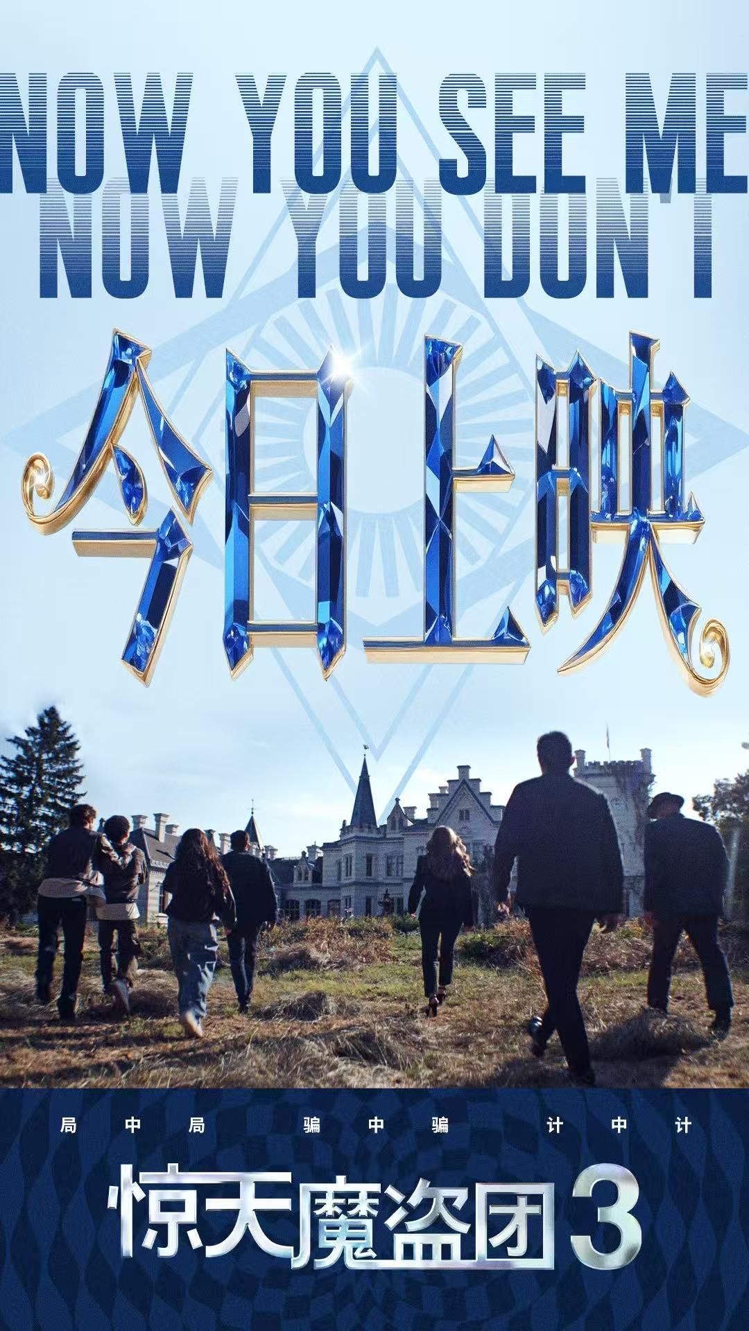电影《惊天魔盗团3》由美国狮门影片公司出品,中国电影集团公司进口,中国电影产业集团股份有限公司发行,中国电影产业集团股份有限公司译制,正在热映中。