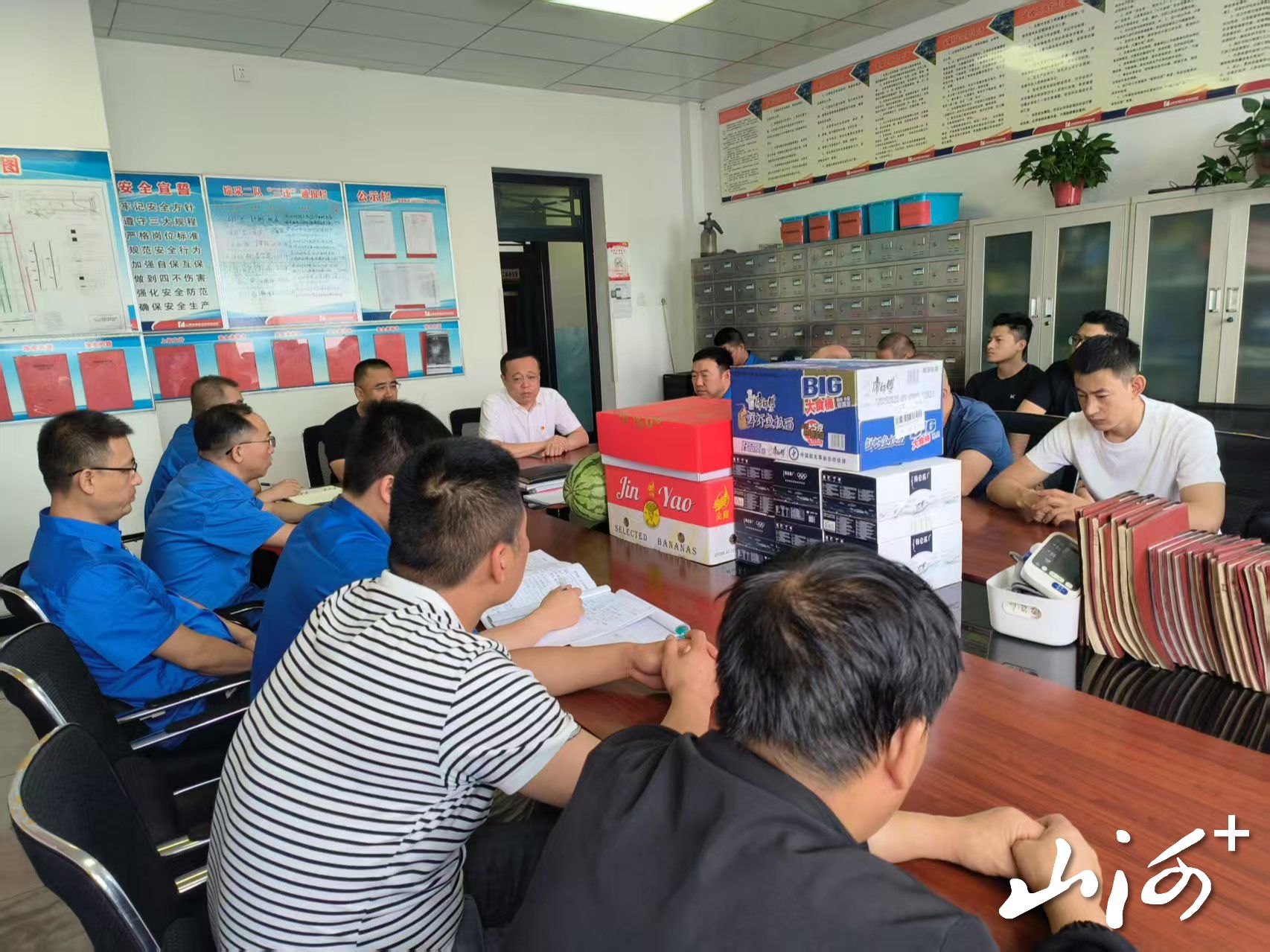 山西晚报·山河+讯 近日,山西焦煤西山煤电官地矿领导走进采煤管理部综采二队班前会现场,为干部职工送去暖心慰问。矿领导亲手将慰问品交到职工手中,对大家在复杂地质条件下的辛勤付出表示衷心感谢。