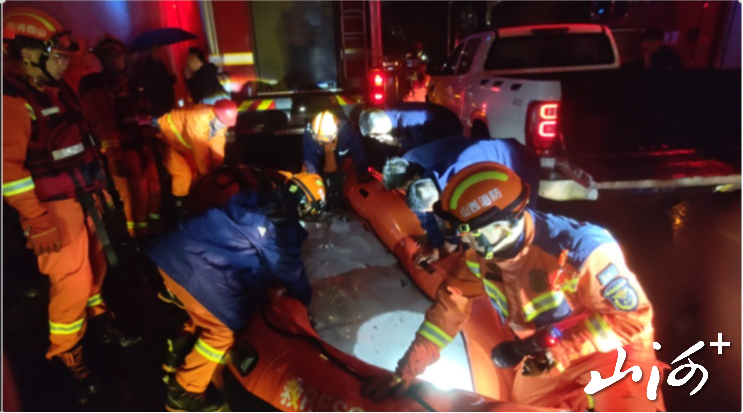 面对复杂严峻的形势,现场指挥员沉着冷静,迅速组织侦察。救援组第一时间明确了所有被困人员的具体位置,并仔细研判了积水的流速与流向。与此同时,通信安抚组持续通过电话与被困者保持联系,一边稳定其紧张情绪,一边指导他们采取必要的自我防护措施,为后续救援争取宝贵时间。指挥员根据现场勘察结果,果断决策,制定出以橡皮艇为核心的水上救援方案。命令下达,救援组迅速行动,熟练地组装起橡皮艇。几名经验丰富的消防员迅速穿戴好个人防护装备,跃入艇中,驾驶着这叶“生命之舟”,毅然决然地驶向那片浑浊、危机四伏的积水区域。