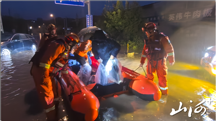 积水之下,情况远比水面看起来更为复杂。隐藏的路障、被淹没的台阶、随处漂浮的杂物……都成为前行路上的“暗礁”。橡皮艇在行进中不时发生磕碰,每一次颠簸都考验着消防员的驾驶技术与心理素质。他们全神贯注,凭借平日练就的过硬本领和丰富经验,小心翼翼地操控方向,灵活地规避着一个个潜在危险,驾驶橡皮艇沿着既定路线,坚定而缓慢地向着加油站门口、向着被困群众的位置一步步靠近。