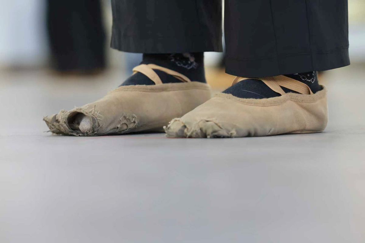 在太原市聋人学校排练室里,李嘉慧脚上那双布满破洞的舞蹈鞋格外醒目。即便学校早已为队员们统一配发了新鞋,她却始终舍不得换下这双旧鞋,依旧穿着它完成每一次训练。